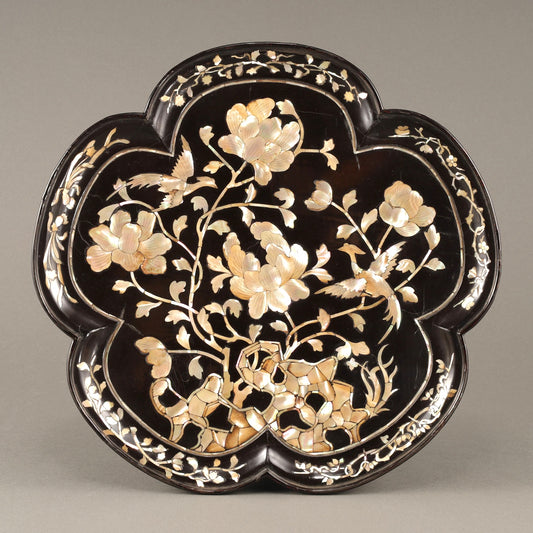 黒漆金彩楼閣人物文箱
