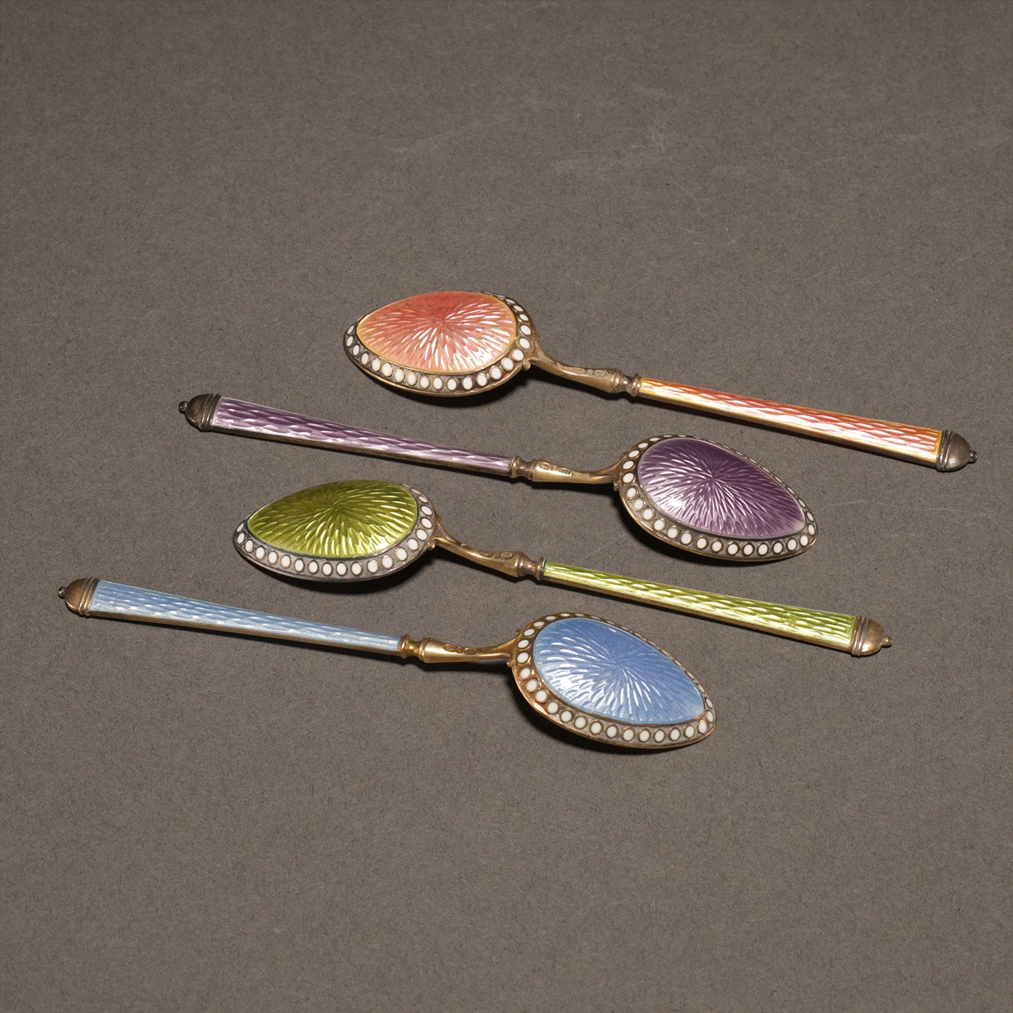 Guilloche Enamel Silver Spoons (12pcs)