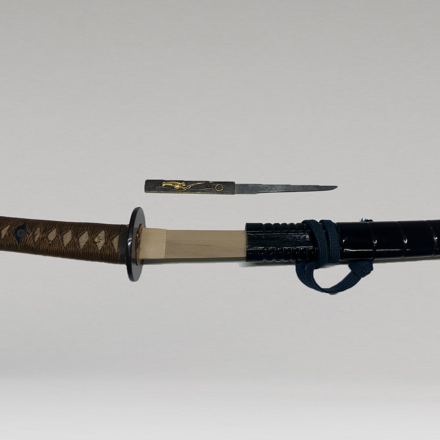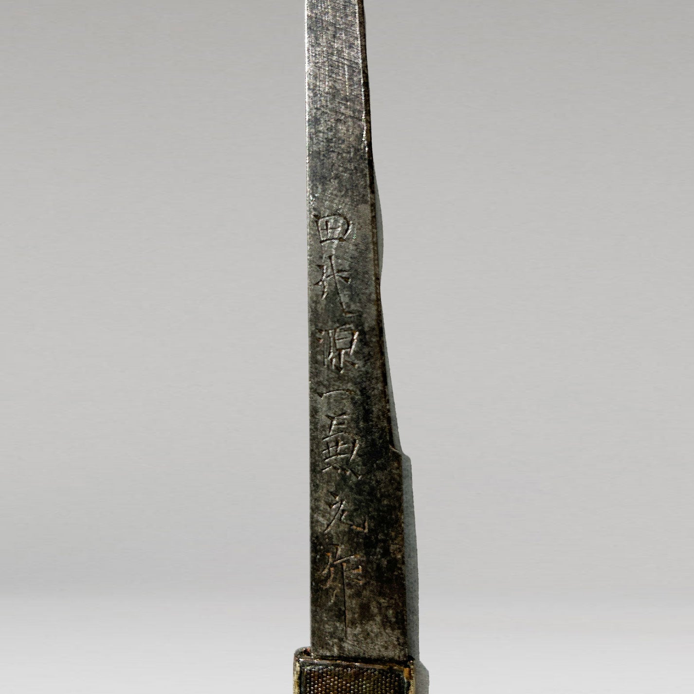 小刀穂に在銘「田代源一兼元作」、刀身はつなぎ(木の仮刃)